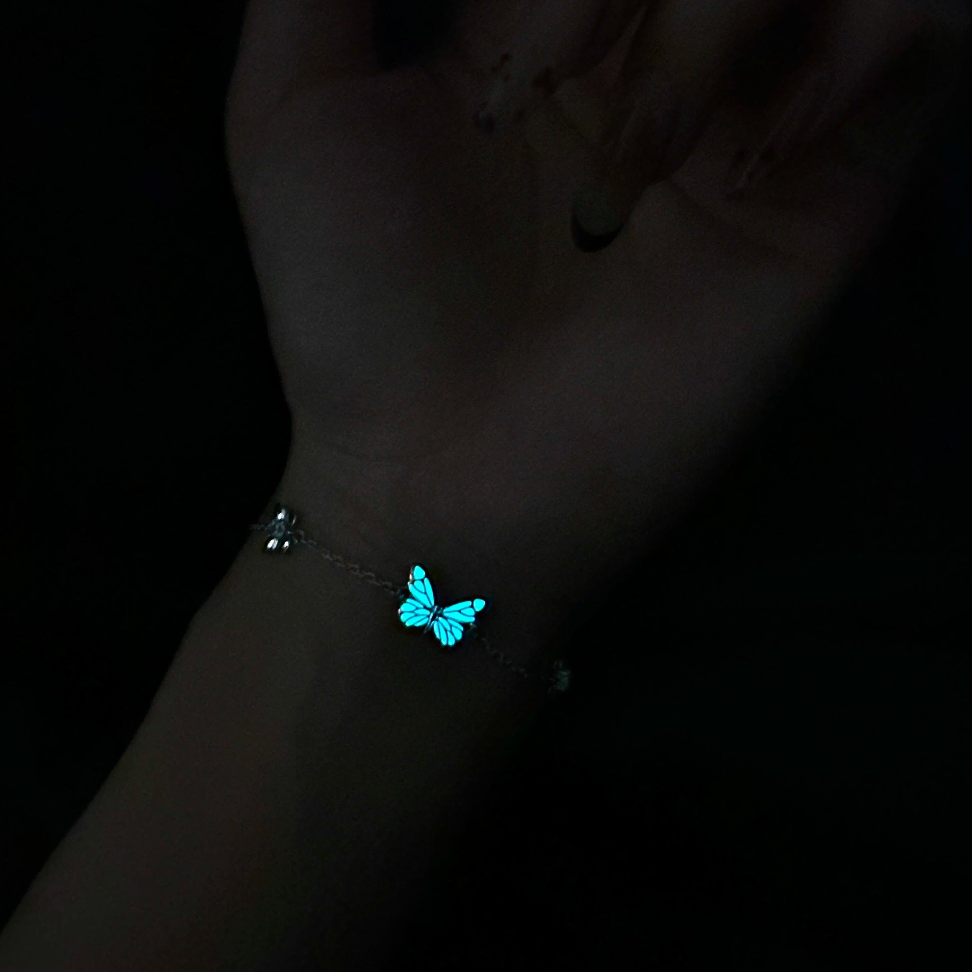 Let your style shine day and night with this luminous butterfly bracelet. Featuring a glowing blue butterfly charm that softly lights up in the dark, this bracelet adds a magical touch to any outfit. Lightweight, elegant, and full of whimsical charm, it's the perfect accessory for dreamers, romantics, and lovers of all things unique.